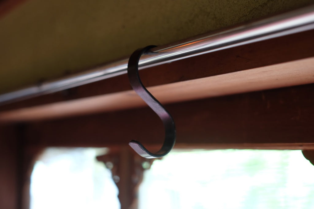 大寺幸八郎商店鴨居やカーテンレールなどにお使いいただける鉄製のS字フックです。