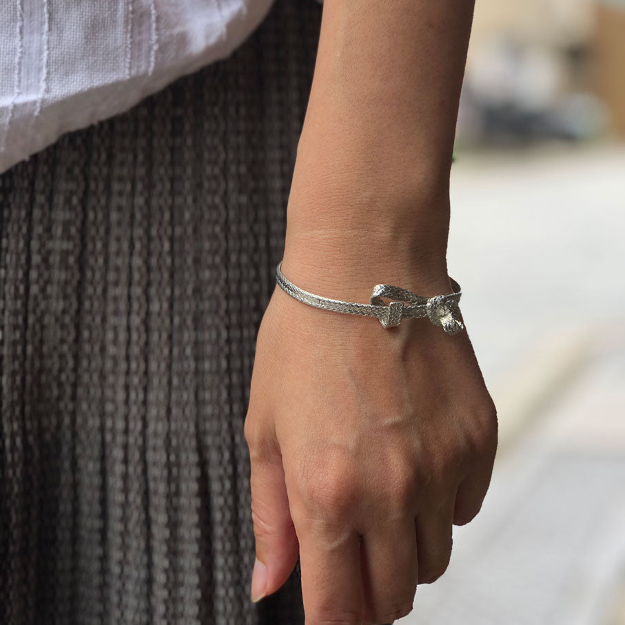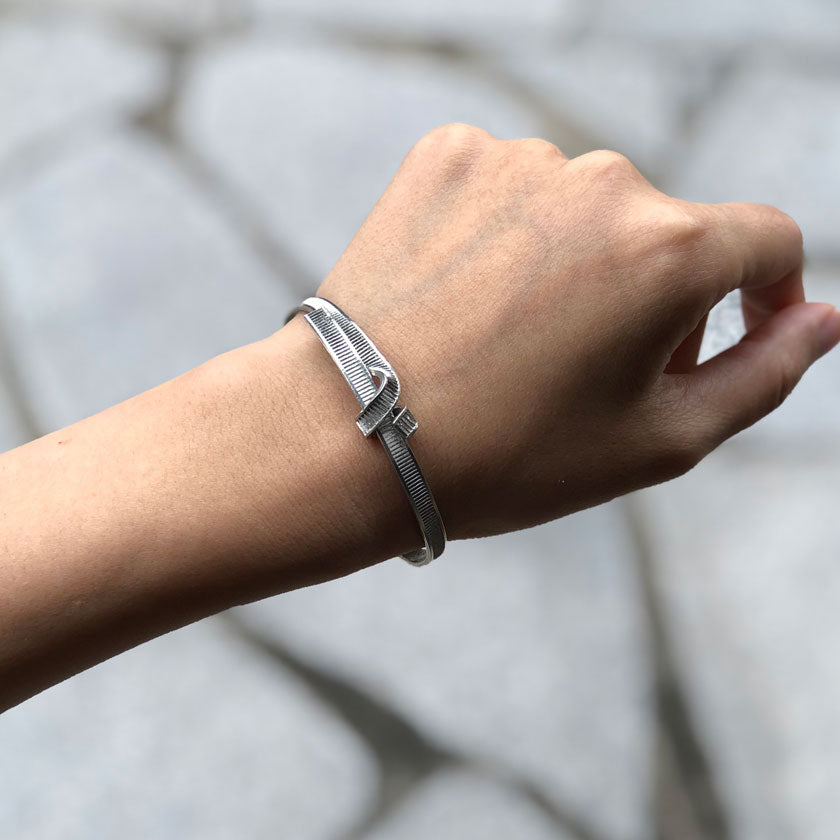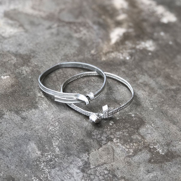 「ゆい」は、結び目のないデザインで ブレスレットにするとユニセックスな印象になります。帯紐のような平らな形状です。