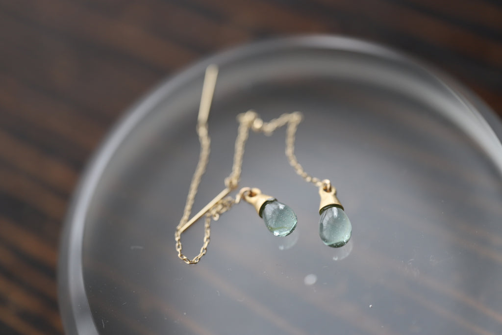そんな古(いにしえ)のガラス作りに興味をもち研究していく中で、植物灰の様々な発色に魅せられ、アクセサリーという形に封じ込めてみました。