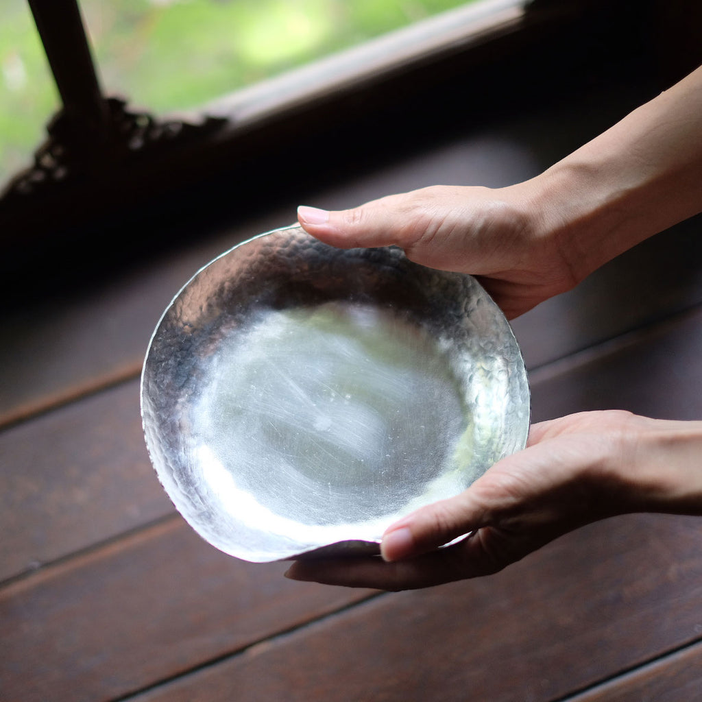 枕草子の「あてなるもの」の一節からお借りして、「かなまり」と名付けられました。「かなまり」は鋳物ではなく、職人の手によって、ひとつひとつ錫の板を型に打ち付けて形作られています。厚みがあるので、程よい重厚感がありしっかりとした作りとなっています。