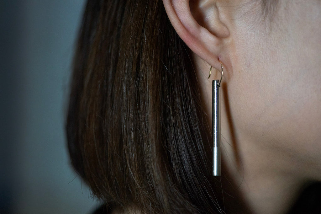 長めのピアスはストールやコートなどに引っかかりやすいので、必ず同梱のキャッチをして装着いただくようお願いいたします。