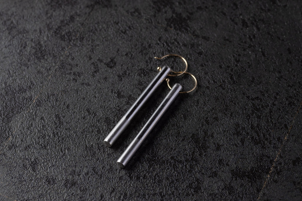 下地、研ぎ、塗りをの工程を経た黒艶の漆塗りの上に プラチナ箔押しを施したプラチナ箔のピアス。艶とマットのツートン仕上げです。