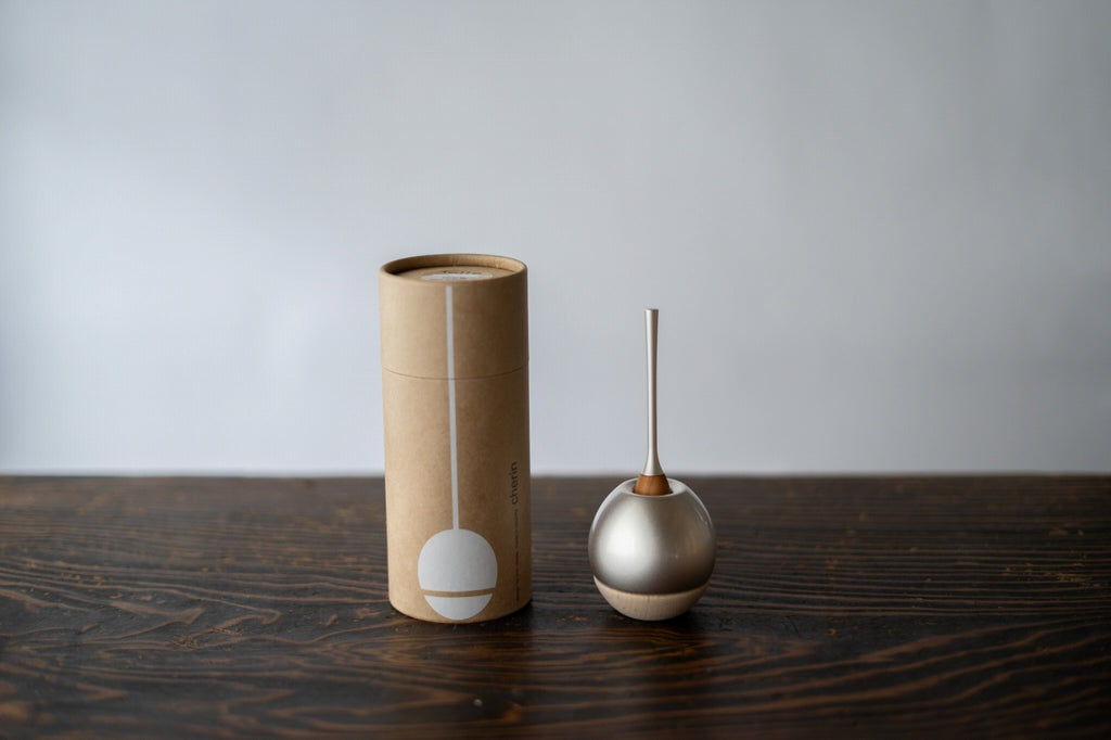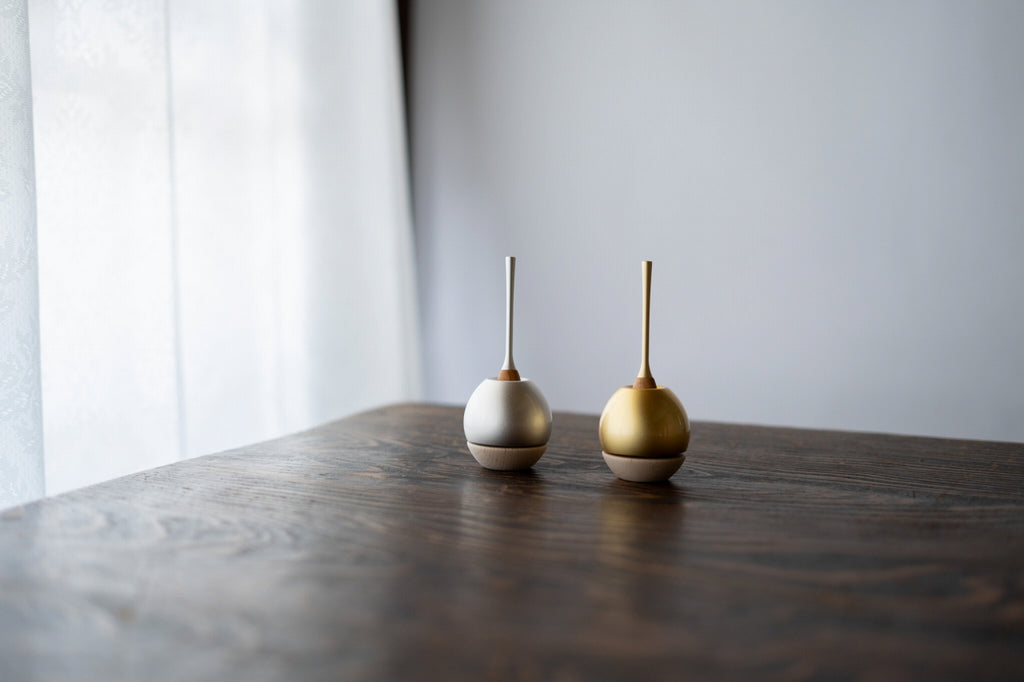 このCherinシリーズは、りん棒がおりんにそっと置いて収納されている素敵な佇まいが特徴です。りん棒を手に取り、おりんを鳴らした後 おりんの中に戻しても音が鳴りやむことはありません。新しい所作と、柔らかい音色で 静かな祈りの時が生まれます