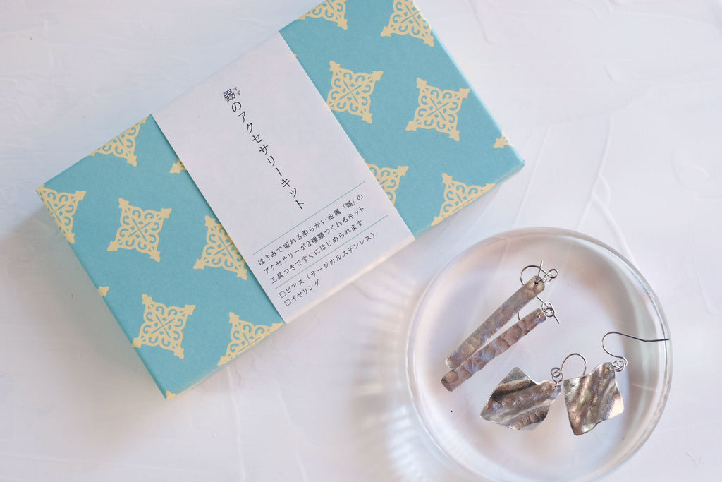 大寺幸八郎商店※「2種類作れる錫のアクセサリーキット」につきまして、一部説明書が入っていないものがあることが分かりました。こちらよりお取り扱い説明書をダウンロードいただくか、ご希望があれば郵送いたしますので、お問合せフォームよりご連絡くださいませ。