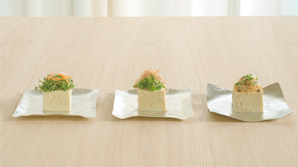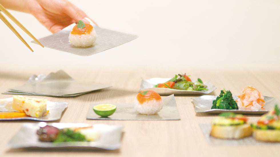 柔らかくて形は変幻自在。丸い麺棒でまっすぐなもので伸ばせば、元通りの平らな錫板にもどります。錫には抗菌作用があり、直接食品を置いてお使いいただけます。