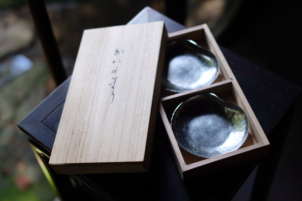 「かなまり」は鋳物ではなく、職人の手によって、ひとつひとつ錫の板を型に打ち付けて形作られています。厚みがあるので、程よい重厚感がありしっかりとした作りとなっています。