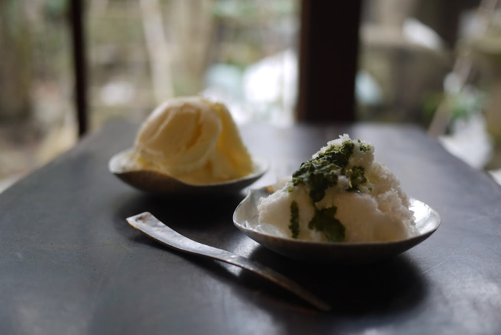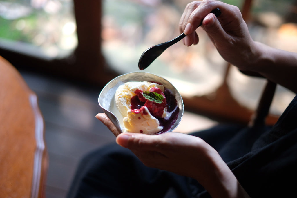 アイスクリームを盛りつけると、冷たさが器にひんやりと伝わります