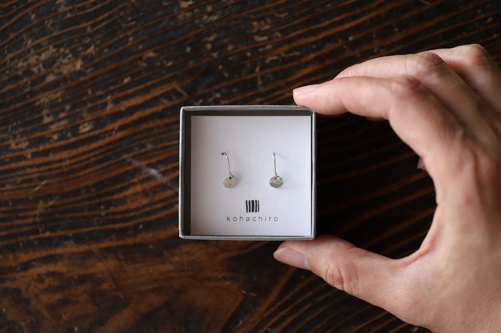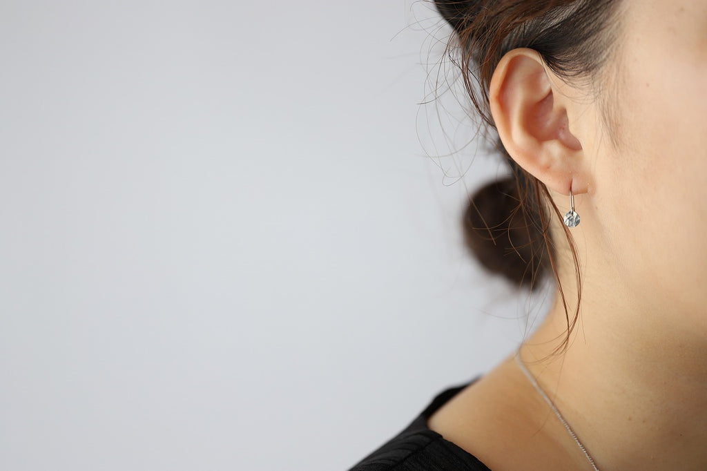 小さい鎚目をつけた丸いモチーフが、さりげなくキラキラと揺れるピアスです。