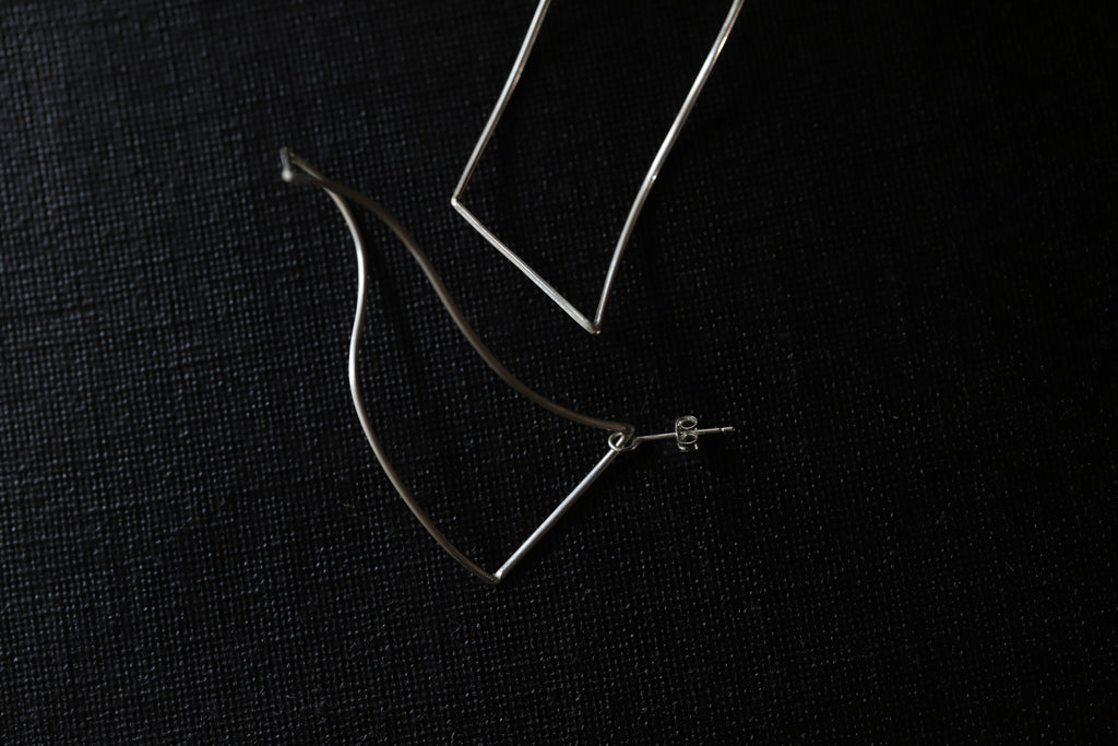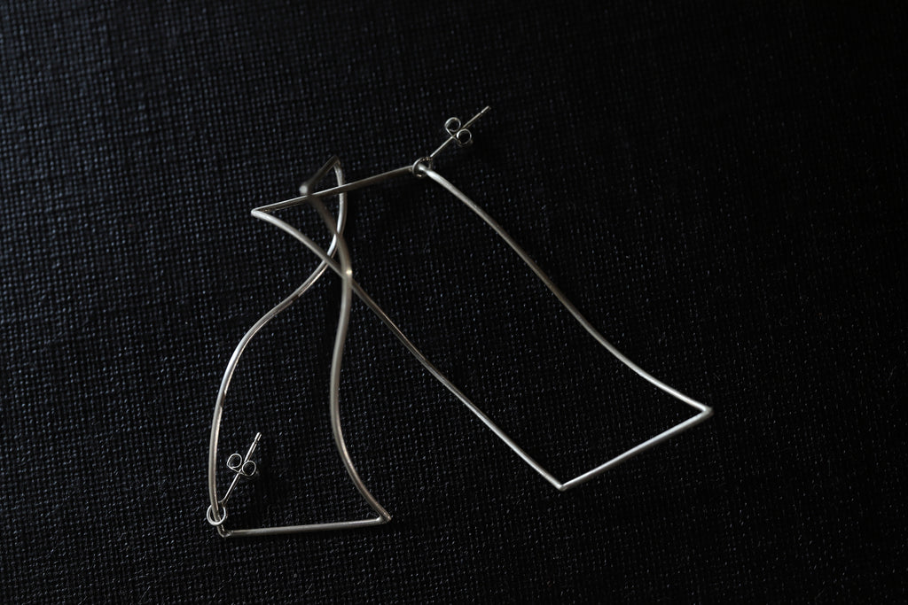 大寺幸八郎商店ふせ さゆきによるシルバージュエリーブランド「minimal」の自身で描いたグラフィックをモチーフにしたピアス。